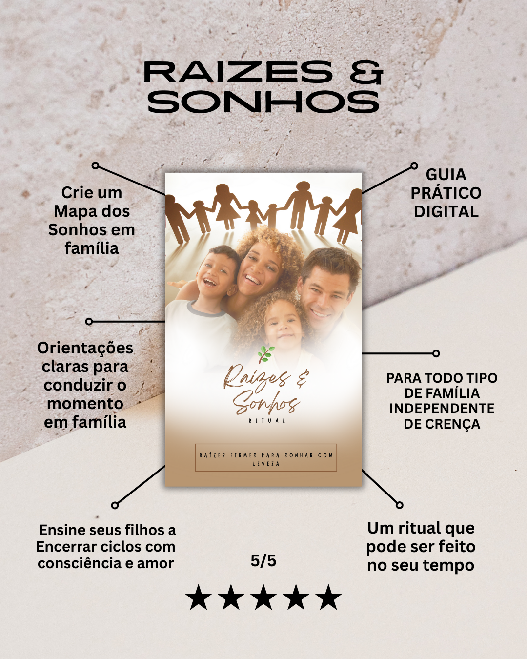 O Ritual Raízes & Sonhos é um guia conduzido para famílias reais que desejam: *Pausar antes de começar um novo ciclo. *Olhar com consciência para o ano que passou. *Organizar sonhos, rotinas e intenções com leveza. *Fortalecer vínculos familiares. *Confiar o futuro a Algo Maior. Aqui, os adultos sustentam e as crianças não carregam pesos, elas apenas participam. Quando as raízes estão firmes, sonhar fica mais leve..